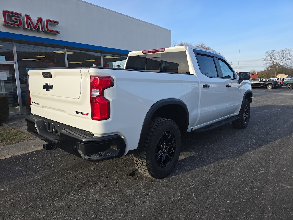 Summit White 2025 Chevrolet Silverado 1500 ZR2 4WD 10-Speed Automatic 3.0L I6 10-Speed Automatic, 4WD, Jet Black/Graystone Leather, 10-Way Power Driver Seat w/Lumbar, 10-Way Power Passenger Seat Adjuster w/Lumbar, 12.3" Multicolor Reconfigurable Digital Display, 120-Volt Bed Mounted Power Outlet, 120-Volt Interior Power Outlet, 15" Diagonal Multicolor Head-Up Display, 2 USB Data Ports, 2nd Row Heated Outboard Seats, Adaptive Cruise Control, All-Weather Floor Liner (LPO), Assist Step & Truck Bed Cover Value Pkg III (LPO), Auto-Dimming Inside Rear-View Mirror, Bed View Camera, Bluetooth® For Phone, Chevytec Spray-On Black Bedliner, Color-Keyed Carpeting Floor Covering, Deep-Tinted Glass, Driver Memory, Dual Rear USB Ports (Charge Only), Electric Rear-Window Defogger, Electronic Cruise Control, EZ Lift Power Lock & Release Tailgate, Floor Mounted Center Console, Front LED Fog Lamps, Front Rain-Sensing Wipers, Hard Folding Truck Bed Cover (LPO), HD Surround Vision, Heated Driver & Front Outboard Passenger Seats, Heated Steering Wheel, Heavy-Duty Air Filter, High Gloss Black Mirror Caps, Hill Descent Control, Hitch Guidance, Hitch Guidance w/Hitch View, In-Vehicle Trailering System App, Integrated Trailer Brake Controller, Keyless Open & Start, LED Cargo Area Lighting, Manual Tilt/Telescoping Steering Column, Off-Road High Clearance Steps (LPO), OnStar Services Capable, Outside Heated Power-Adjustable Mirrors, Performance Red Recovery Hooks, Perimeter Lighting, Power Front Passenger Windows w/Express Up/Down, Power Front Windows w/Driver Express Up/Down, Power Rear Windows w/Express Down, Power Sliding Rear Window w/Rear Defogger, Power Tilt & Telescoping Steering Column, Preferred Equipment Group 3LT, Rear Camera Mirror, Rear Cross Traffic Braking, Rear Pedestrian Alert, Rear Wheelhouse Liners, Remote Vehicle Starter System, Safety Alert Seat, SiriusXM w/360L Trial Subscription, Standard Tailgate, Steering Wheel Audio Controls, Technology Package, Teen Driver, Theft Deterrent System (Unauthorized Entry), Tire Pressure Monitoring System, Trailer Camera Provisions, Trailer Side Blind Zone Alert, Trailering Package, Ultrasonic Front & Rear Park Assist, Universal Home Remote, Up-Level Rear Seat w/Storage Package, Ventilated Driver & Front Passenger Seats, Wi-Fi Hot Spot Capable, Wrapped Steering Wheel, ZR2 Suspension Package.